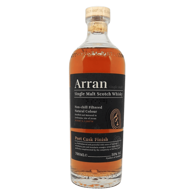 Whisky Arran Port Cask Finish este un single malt scoțian remarcabil, maturat inițial în butoaie de stejar american și finalizat în butoaie care au conținut anterior vin de Porto. Acest proces conferă băuturii o eleganță aparte și arome stratificate, alături de o tărie de 50%, specifică distileriilor artizanale din regiunea Isle of Arran.